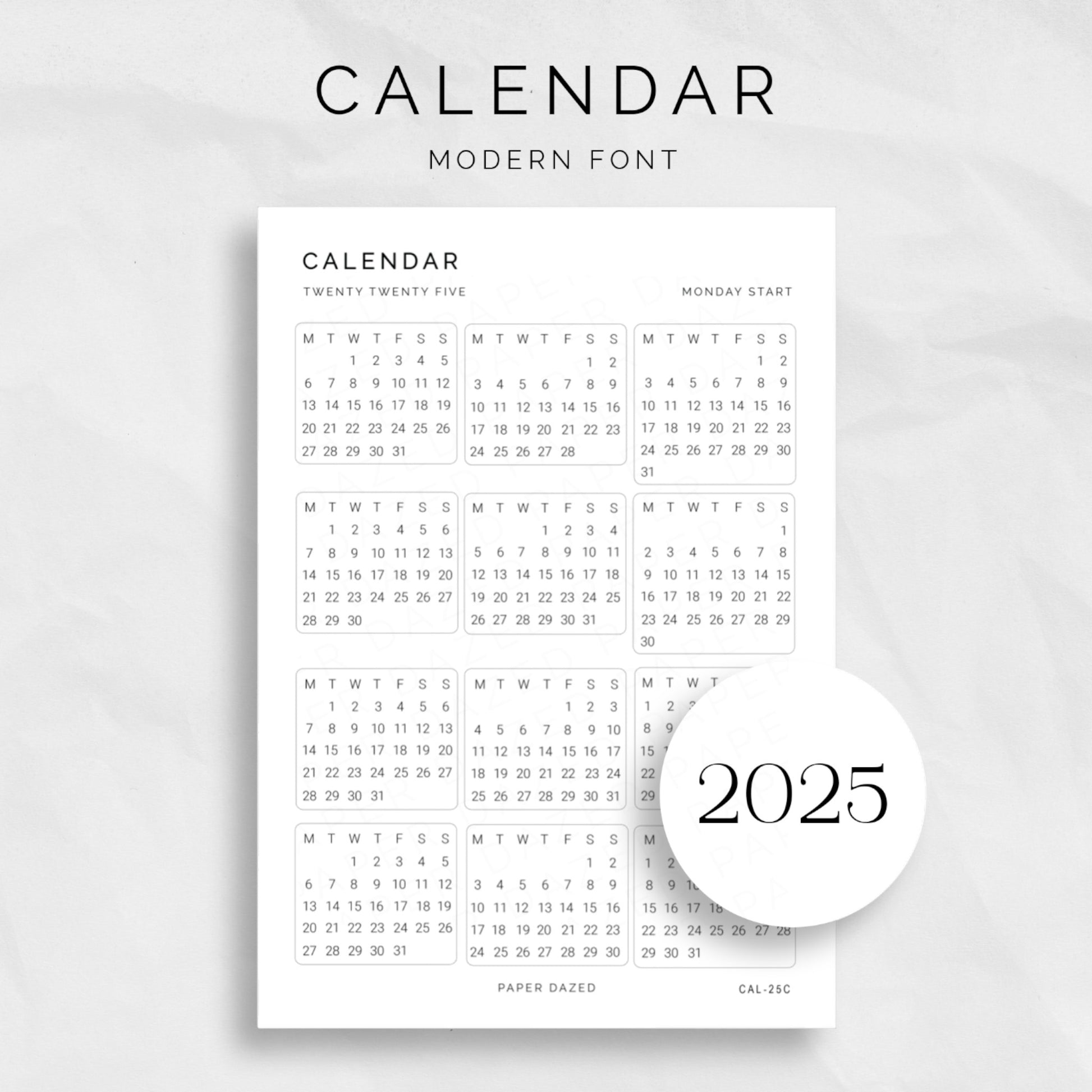 2025 Mini Calendar Stickers MODERN FONT – Paper Dazed